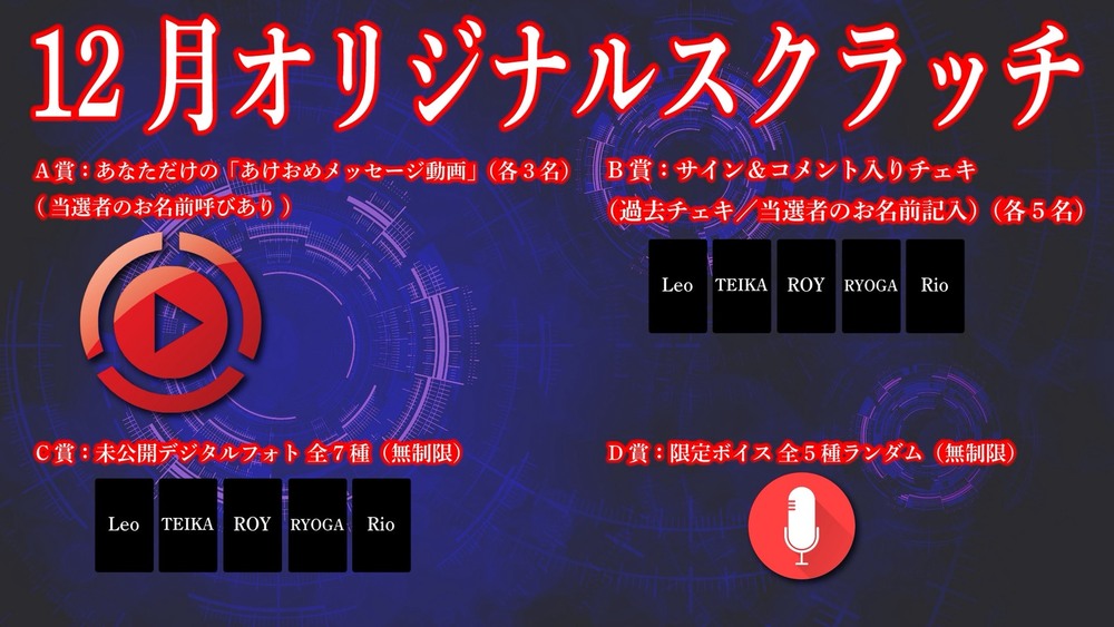 A賞:あなただけの「あけおめメッセージ動画」(各3名)※当選者のお名前呼び有り